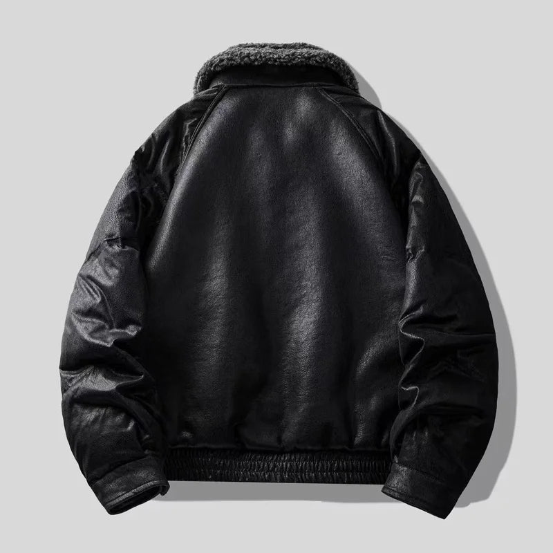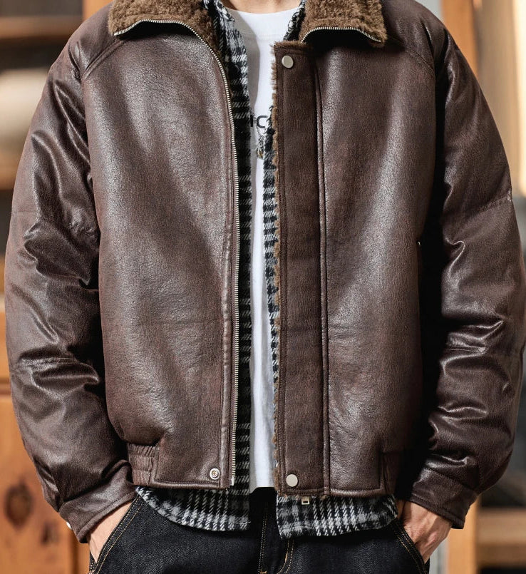 The relaxed silhouette, turn-down collar, and clean zip closure create a confident, effortless profile, equally suited for daily wear, cold-weather commutes, or weekend city walks. Inside, the smooth lining provides added insulation and structure, while the solid exterior keeps the look timeless and uncluttered.